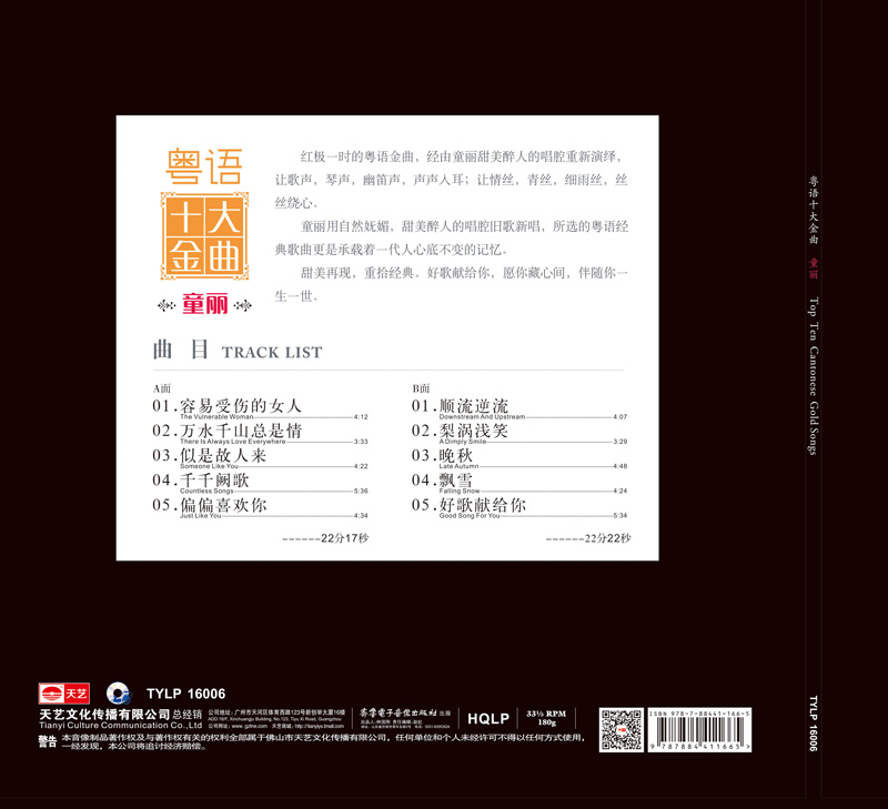Genuine Tong Li Cantonese 12 Golden Song LP Black Glue Record Gramophones Special 12-inch large bottom piece good song dedicated to you