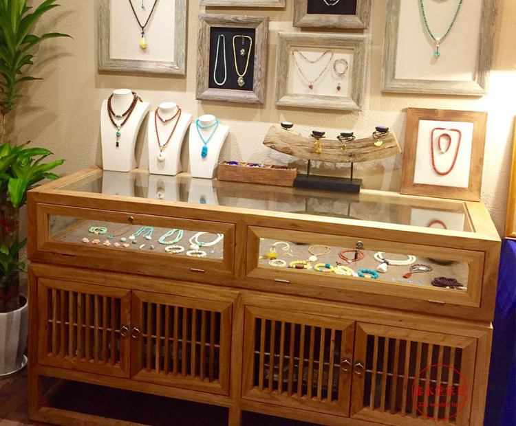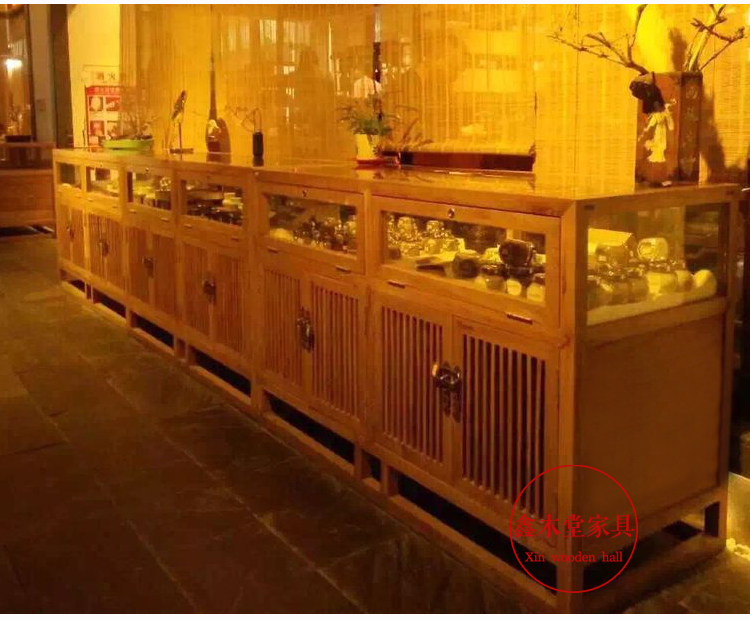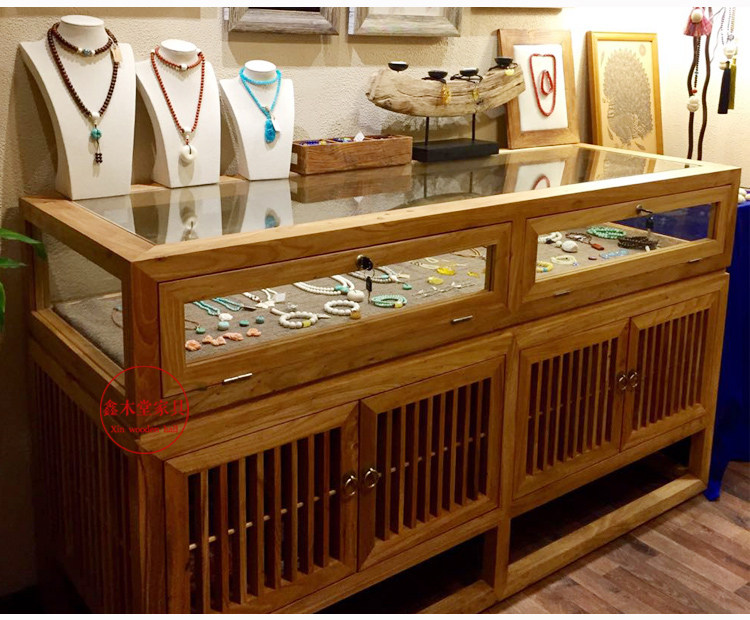 New Chinese style solid wood jewelry counter antique jade display cabinet antique display cabinet glass display rack customization