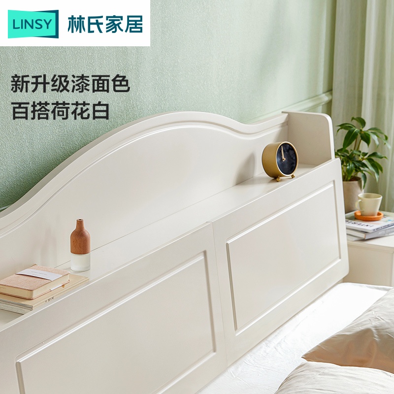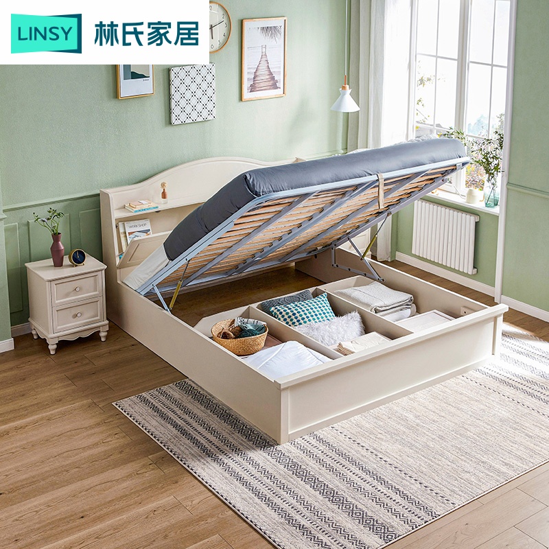 Lin's wooden wood Korean bedhead storage high box bed on the pastoral wind bedroom 1 8m 1 5m double bed to house furniture BD6A