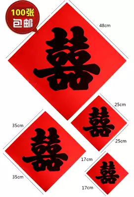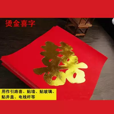 Wedding red paper, happy word brush printing, big red guide road, street side, telephone pole, tree, wall, street gate