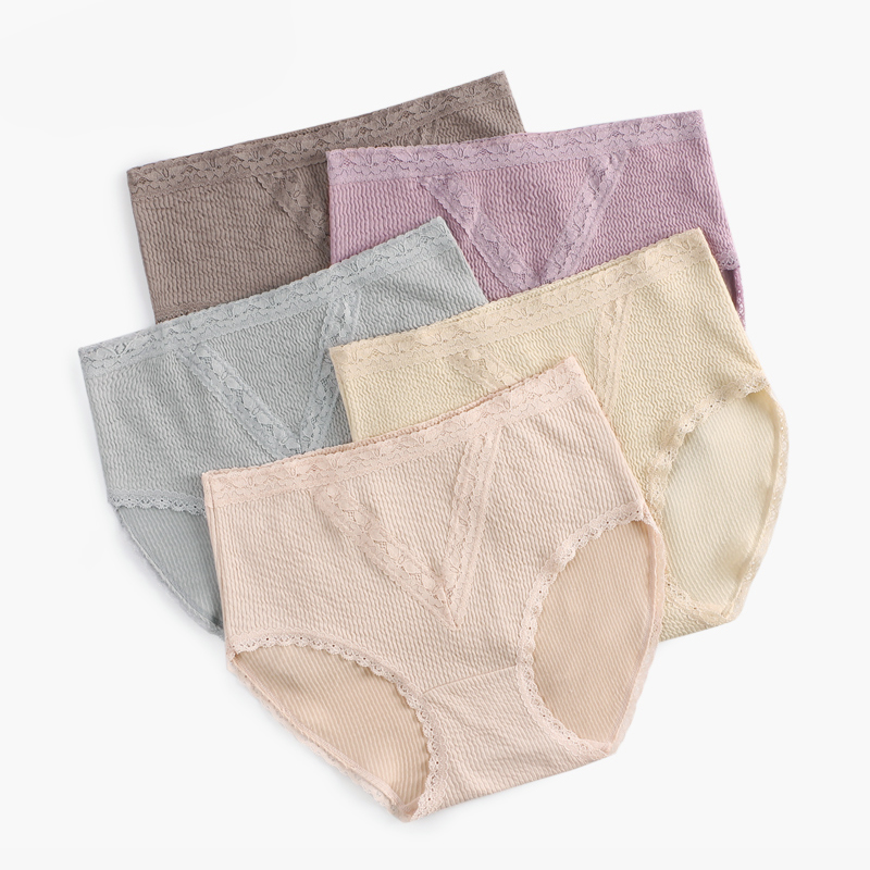3 high-waisted abdominal hip-raising panties female girdle postpartum large size women's triangle shorts 200 pounds pure cotton crotch lace