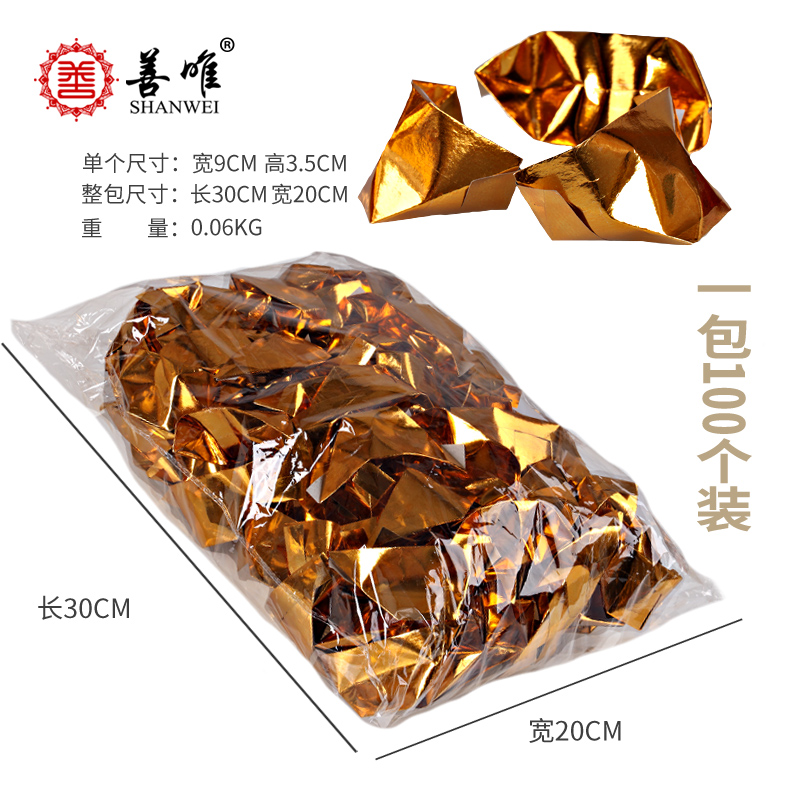 Gold Yuanbao Burnt Paper Tin Foil Paper Folded Meta paper Semi-finished Hand folded paper Tomb Sweeping Day Festival Sacrificial supplies Large number-Taobao
