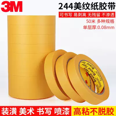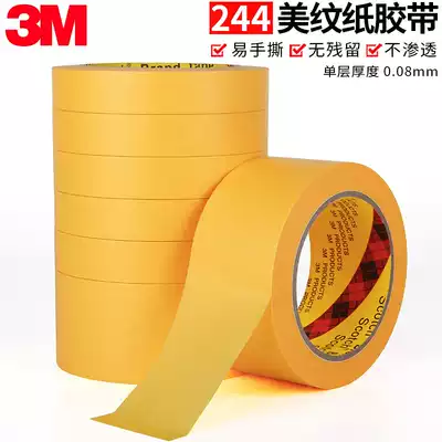 3M244 Masking tape Yellow washi tape Car spraying masking Non-marking high temperature resistant glue solder-proof model covering real stone paint lattice tape Color separation painting protection masking paper