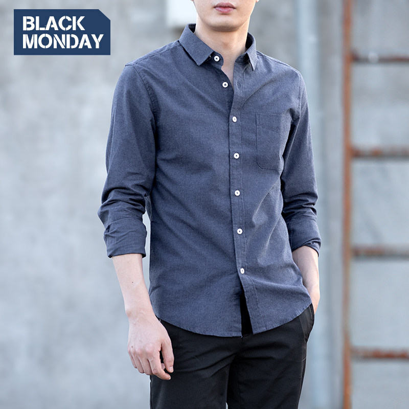 Spring and autumn shirt men's long-sleeved cotton color spinning shirt fashion basic business casual student slim inch shirt