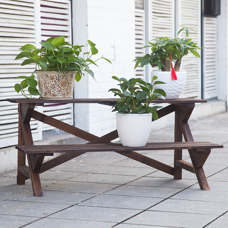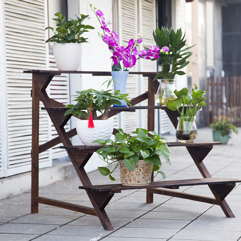 Anti-corrosion wood outdoor ladder flower stand Solid wood balcony multi-layer wooden flower rack Carbonized wood fleshy courtyard flower pot rack
