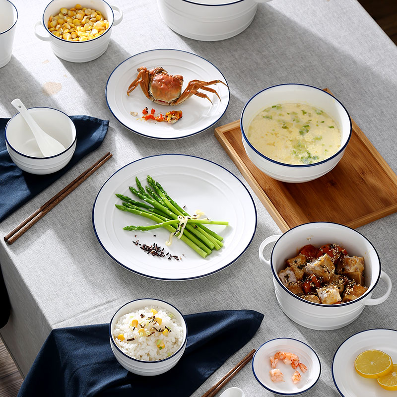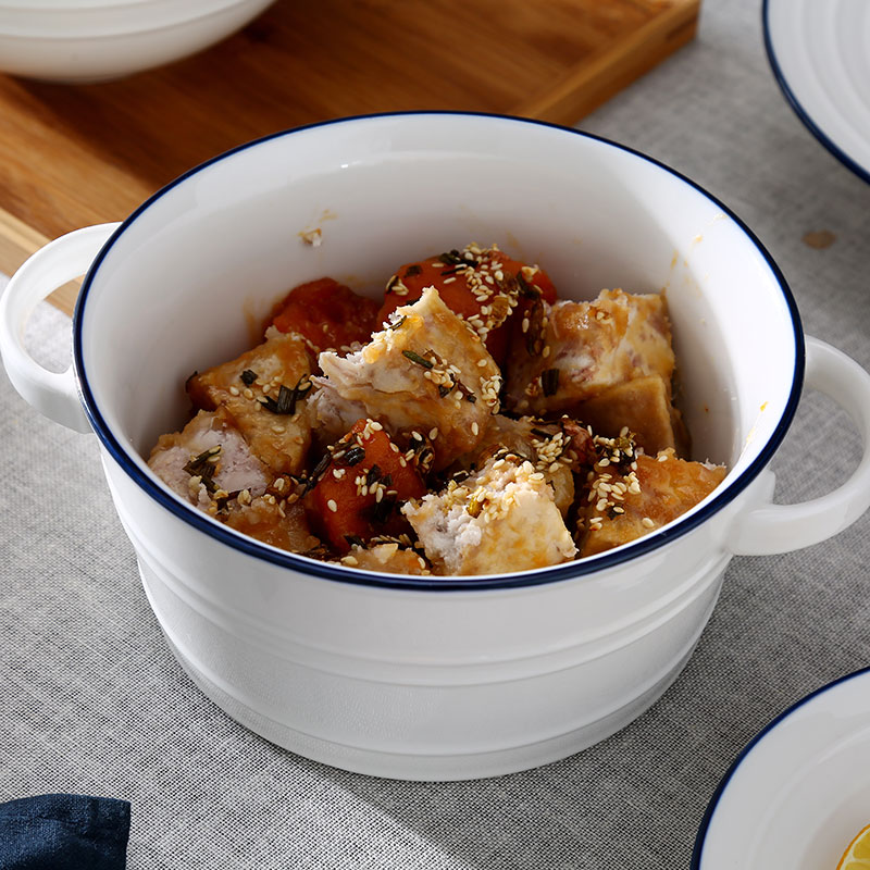 Ceramic Bowls CREATIVE RICE BOWLS DISH TRAY SUIT CHINESE HOME BIG NUMBER SOUP BOWL BRIEF ABOUT DOUBLE EAR FRUIT SALAD BOWL