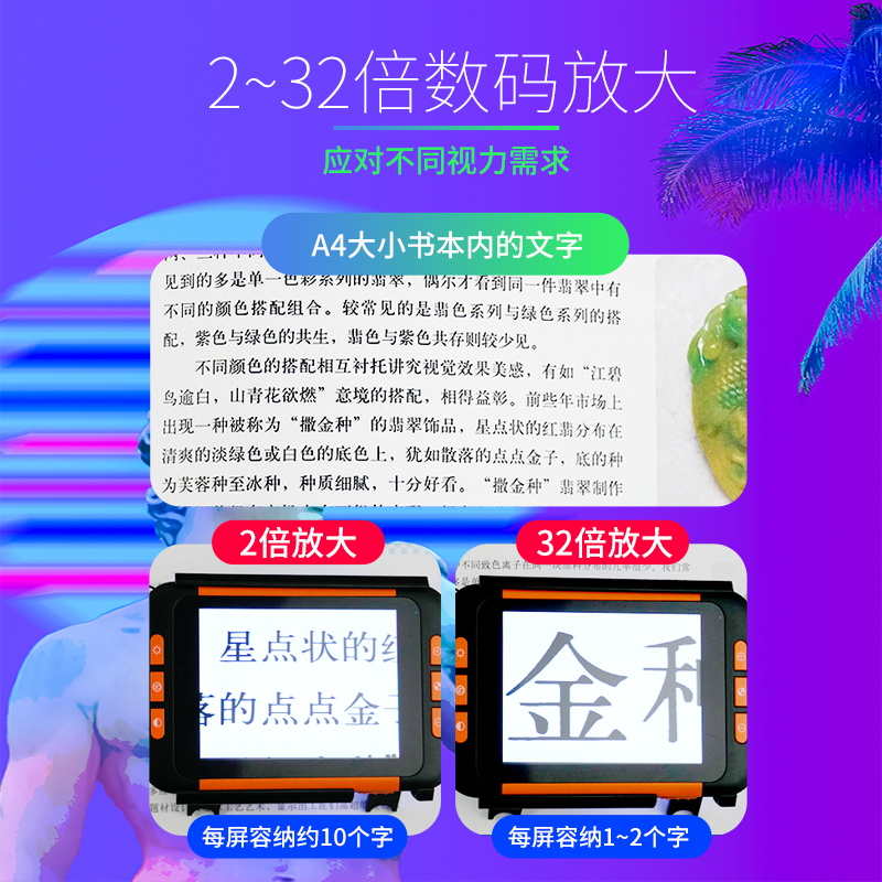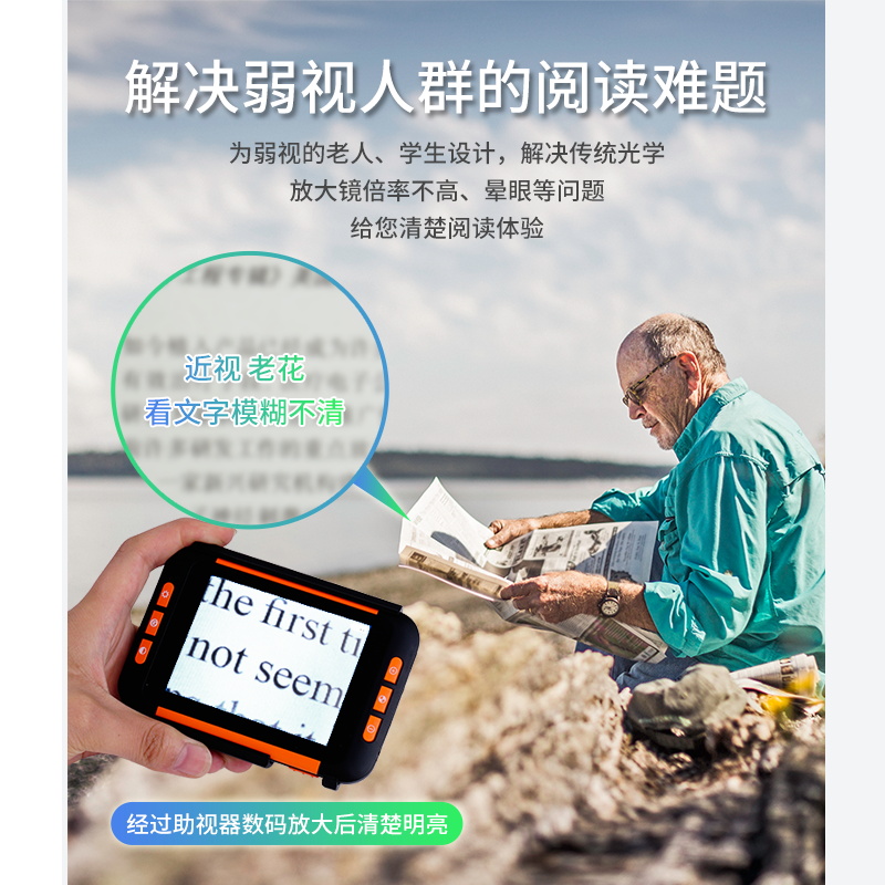 Bester low vision Reading book reading newspaper magnifying glass for the elderly electronic visual aid 32x digital amplifier Portable