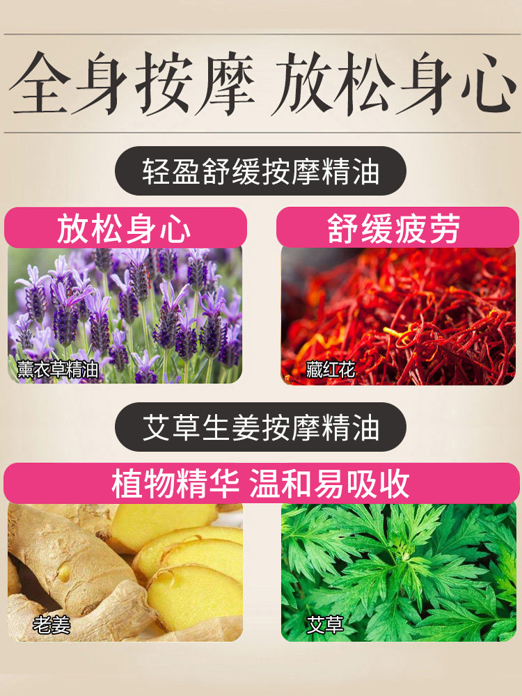 Qianqiancao Ginger Wormwood Full Body Massage Essential Oil Through Meridian Body Open Back Scraping Push Back Oil Beauty Salon Exclusive