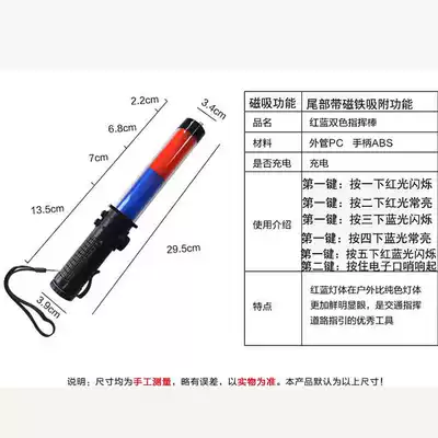 Red and blue rechargeable traffic baton Multi-function fluorescent stick Life-saving stick with lighting with magnet with whistle