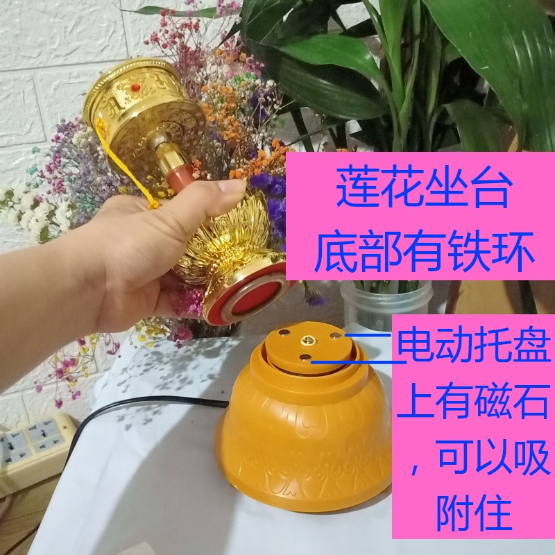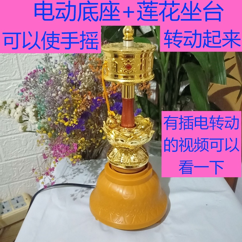 Hand-rotating warp wheel Electric Lotus base can be plugged in to turn supporting household six-character truth mantra Guanyin tube