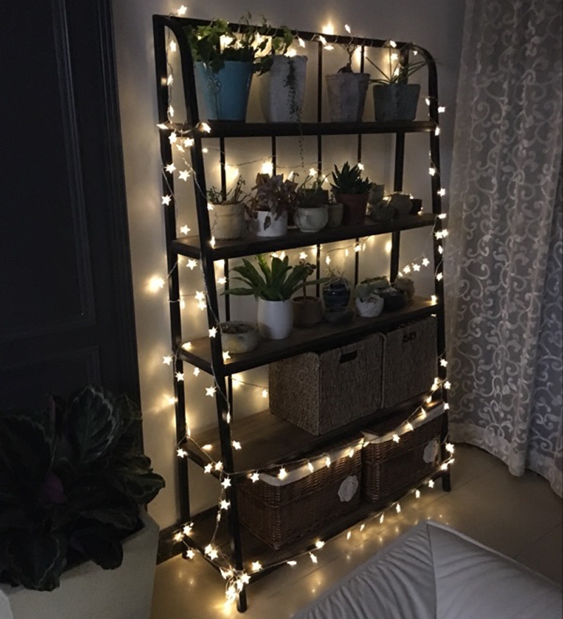 5 meters 50 lights warm white (star) Plug-in 5 meters 50 lights warm white (ball) Plug-in 100 meters 800 lights(complete color)Note 20 meters 200 lights (color white warm blue)