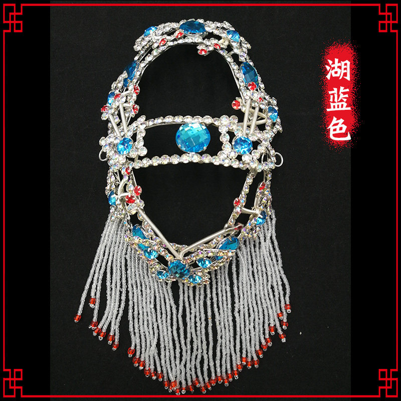 Peking Opera drama Head face water drill decoration Tsing Yi flower headdress Head face multicolored wood drill Back circumference Back three pieces back pocket