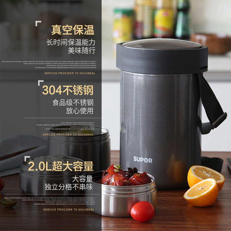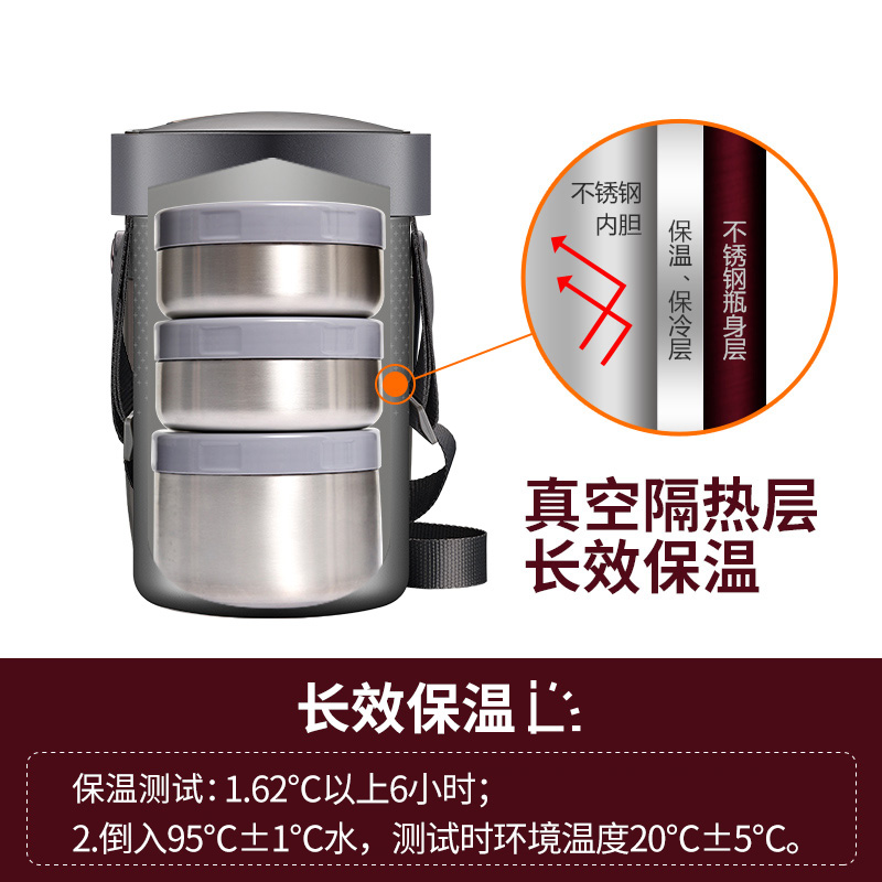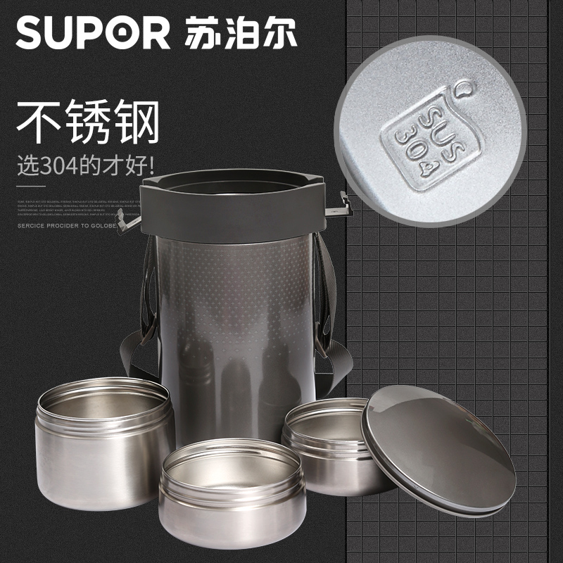 Supor insulated lunch box 304 stainless steel ultra-long insulation bucket 24-hour vacuum lunch box 3-layer student carrying pot