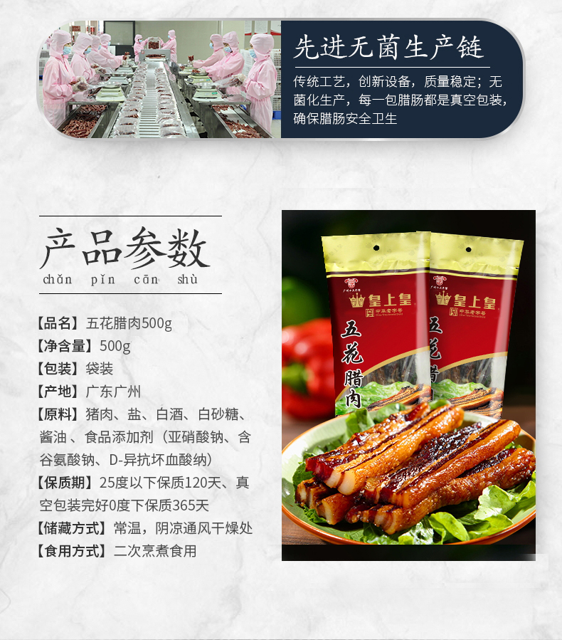 Emperor HuangJinguan high-quality pork belly 500g Guangdong specialty Cantonese sausage flavor pot rice
