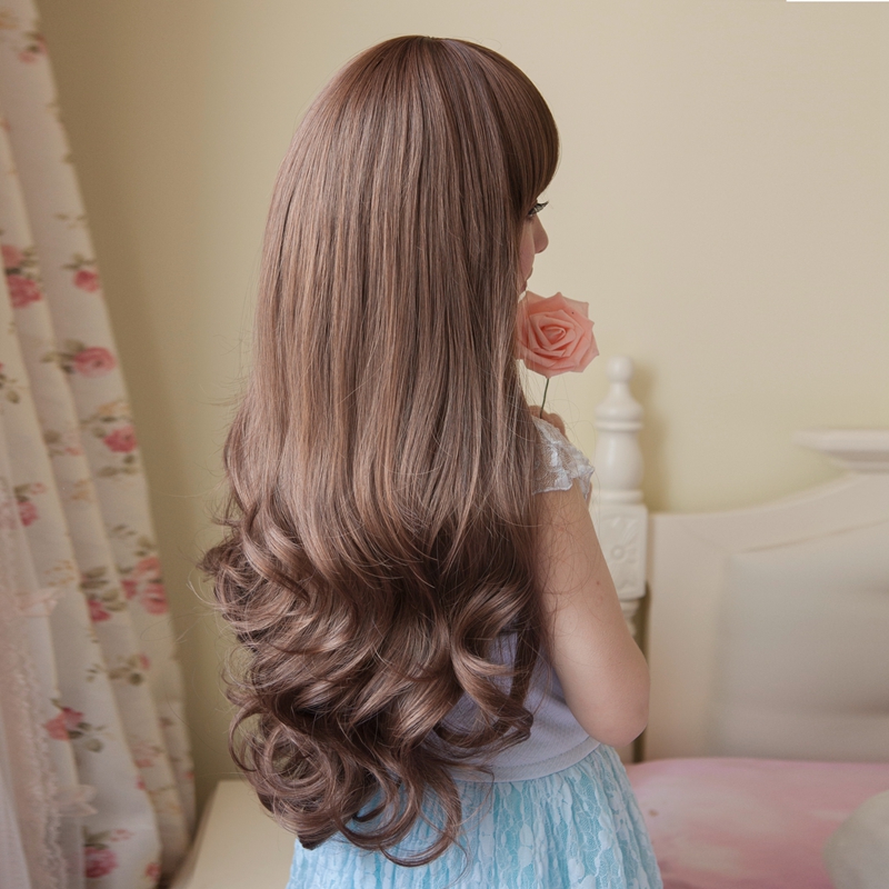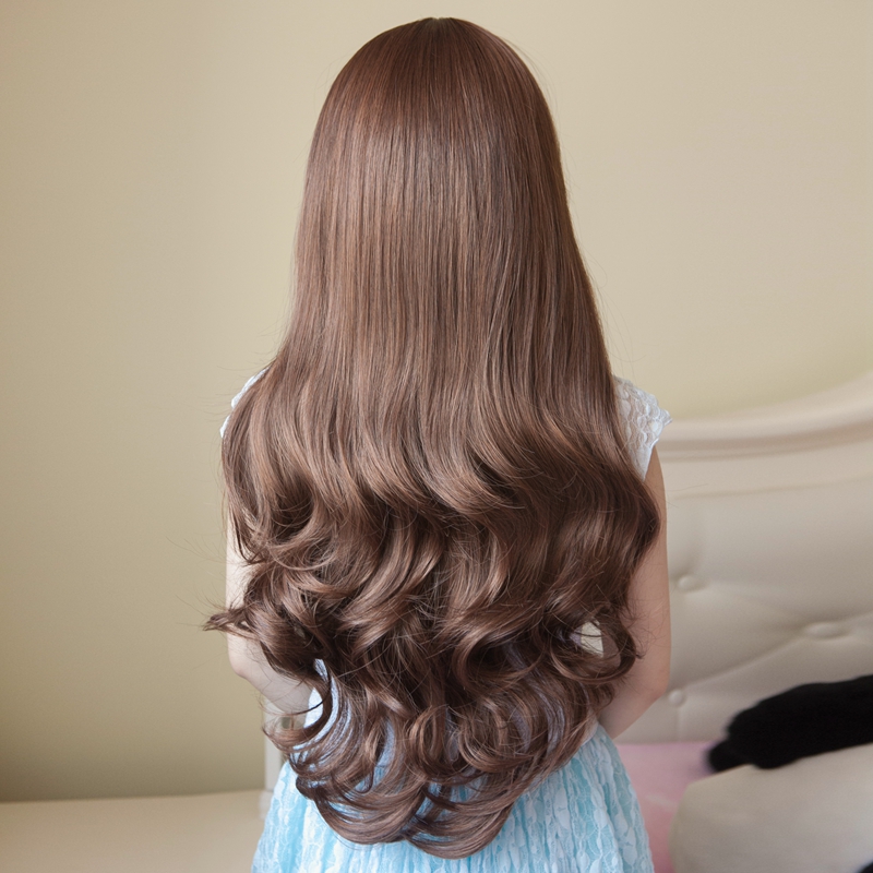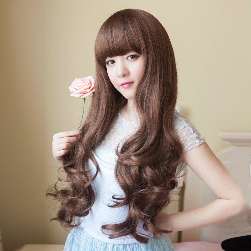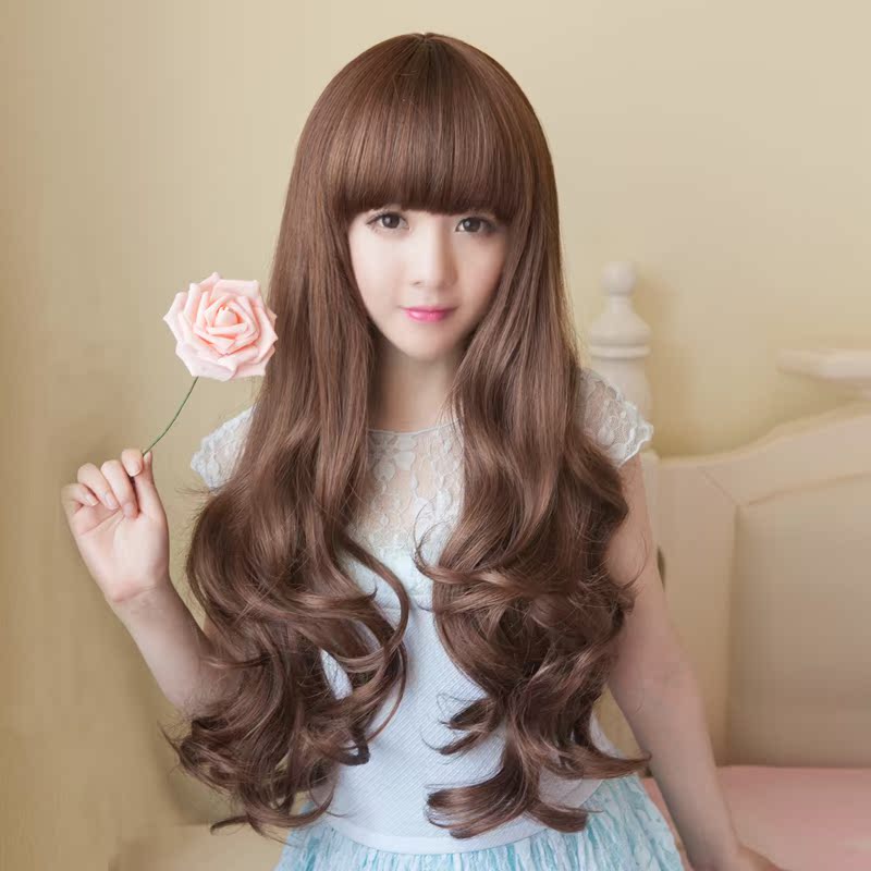 Wig female long curly hair Qi bangs fashion Korean face repair natural fluffy whole top big wavy long hair hairstyle