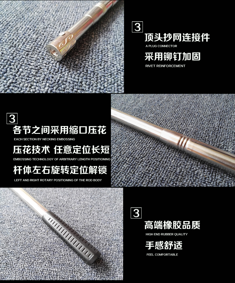 Stainless steel fishing net super hard thick thickened folding triangle head arbitrary telescopic positioning rod 3-4 fishing gear