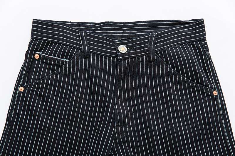 Custom red ears denim retro Paris buckle striped slacks Mbbcar European and American primary color striped slacks men
