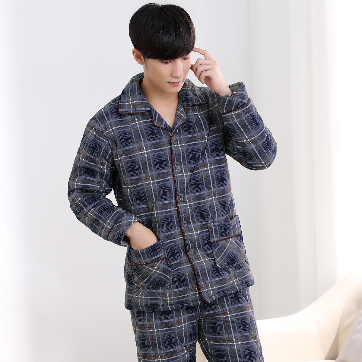 Multi-playful beauty pure cotton bunk cotton pyjamas men's all-cotton thickened warm autumn winter style suit for the winter suits The men's style