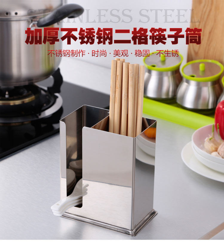 High-end special thick stainless steel square chopstick cylinder 23 g dining room Spoon Disc Multi Purpose Containing Box Shelf Pen Holder