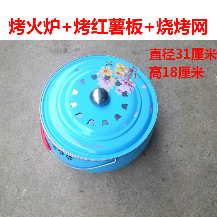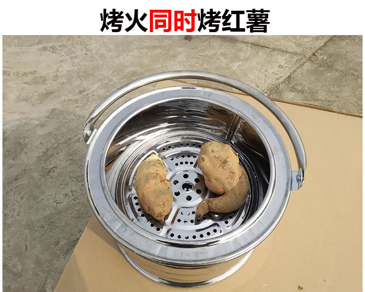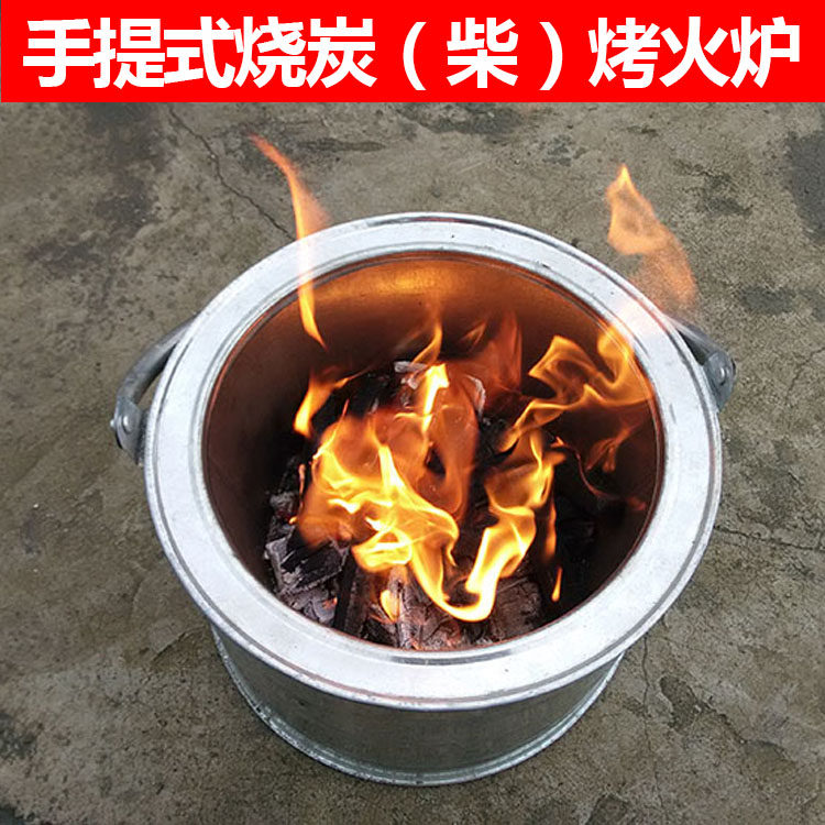 Outdoor portable firewood stove Wood-burning charcoal stove baking basin Stainless steel Wrought iron heating stove Barbecue stove rack