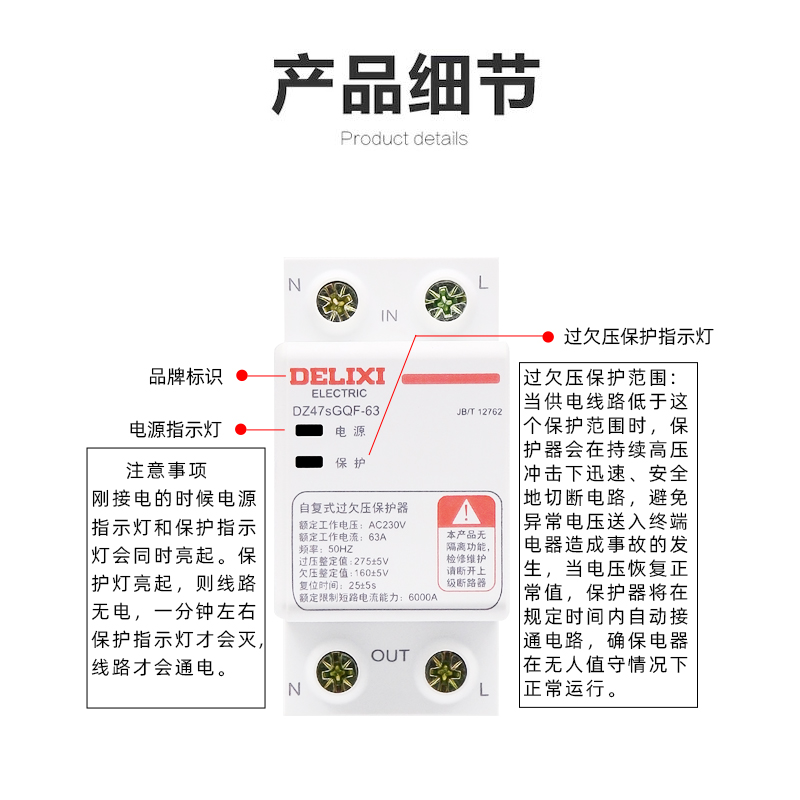 Delixi self-duplex DZ47SGQF household over-under-voltage protector 2p up-in-out 63A down-in-out 40A