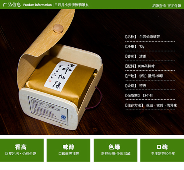 2022 new tea Xuelong Taishun Three cups Xiangming Former green tea Baiyun Xianxian Green Cloud Mountain Fried Green 75 gr Wood Box