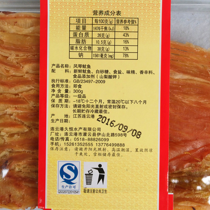 Lianyungang specie Organ Squid 300g Seafood Snacks Snack Original Taste Squid toasted squid