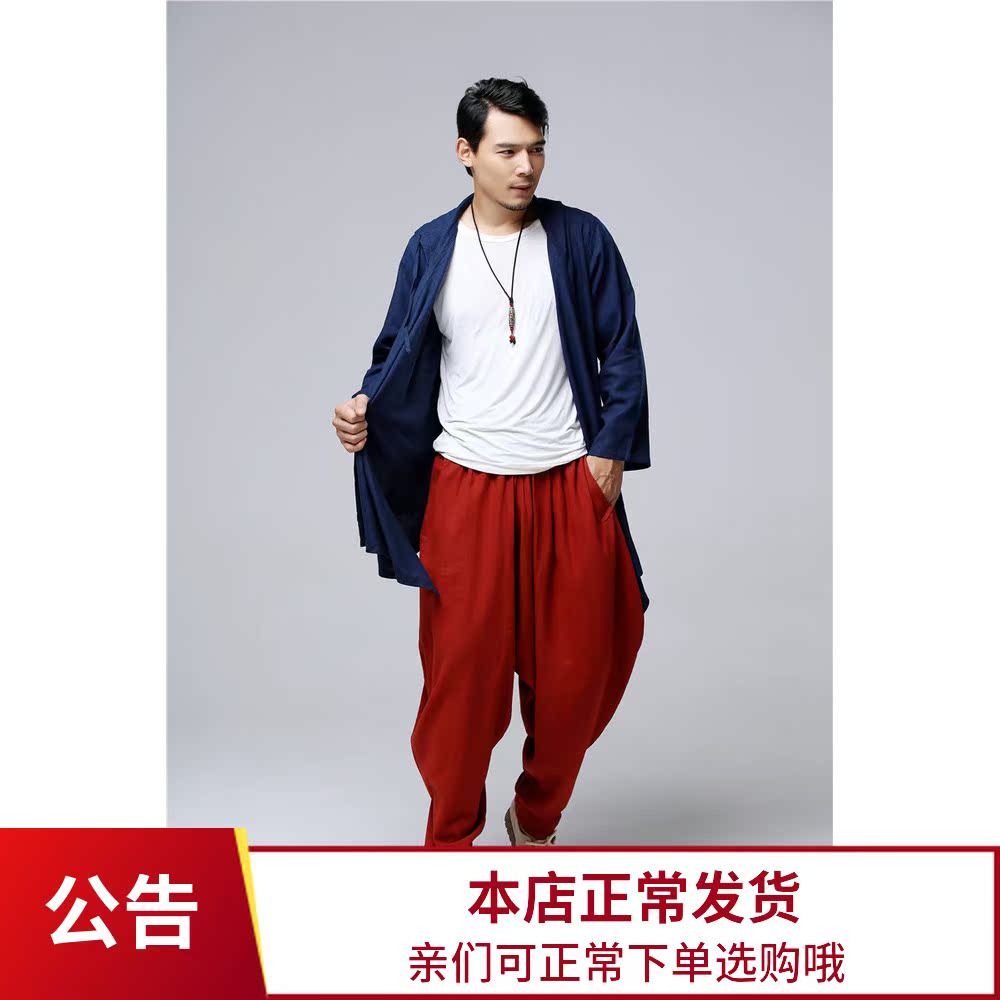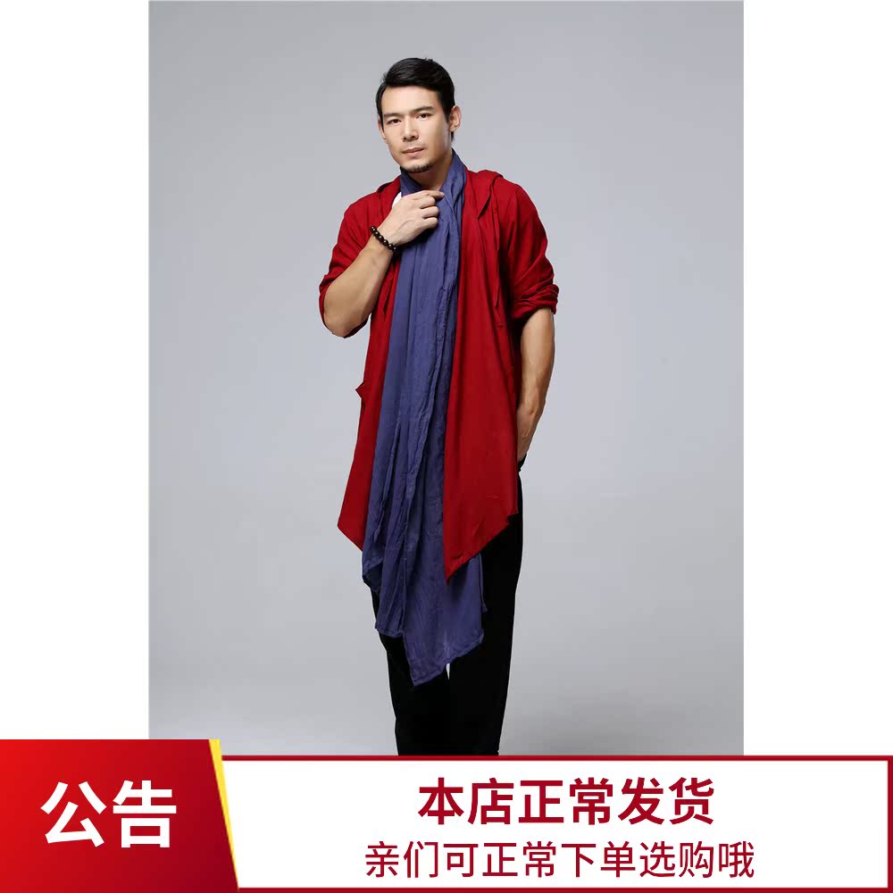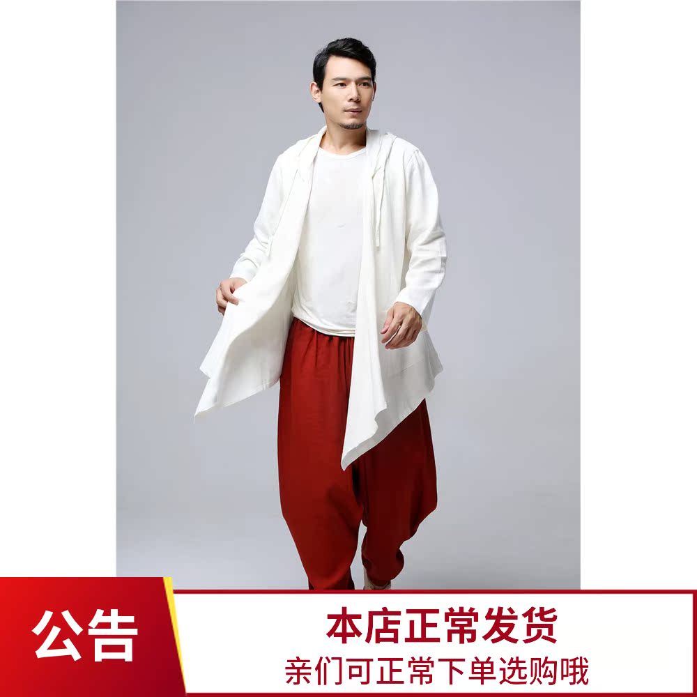 Chinese style men's spring and autumn pure hemp medium and long version of large size casual Chinese hooded irregular retro literary personality coat