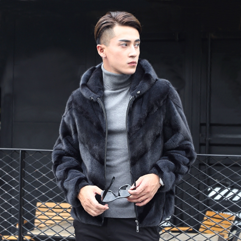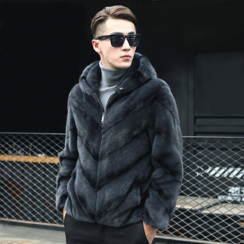 Minke Leather Coat Jacket Male mink USA Velvet Import Ferret youth Chaulian hat Short time Leather Grass Jacket