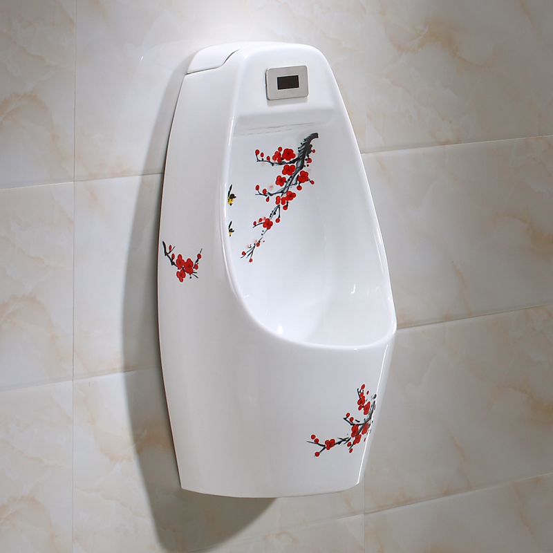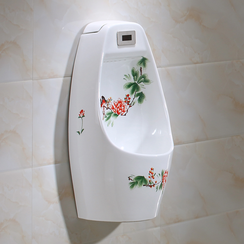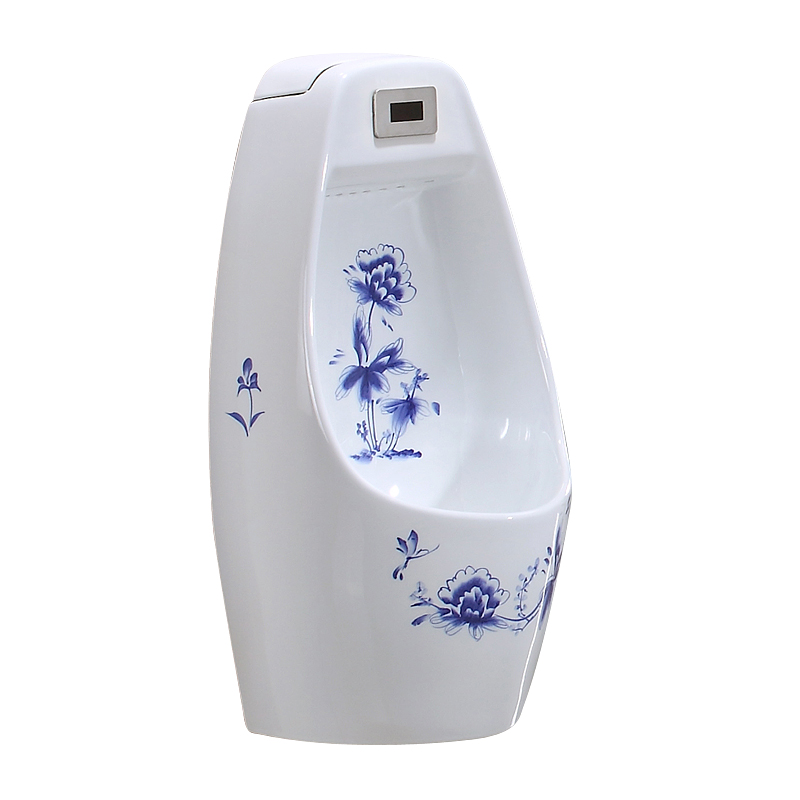 Wall-mounted intelligent automatic induction color urinal bucket hand painted handcolor watercolor Chinese style blue and white porcelain urinal