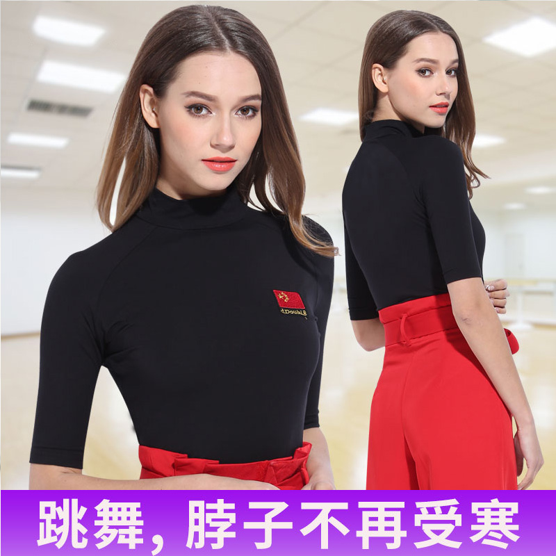 Female blouses Long national flag High-collar bamboo fiber fabric female blouses long sleeves lined with letter Peuded Bamboo Fiber Female Blouse with long sleeves V Collar Letter Javi-Bamboo Fiber