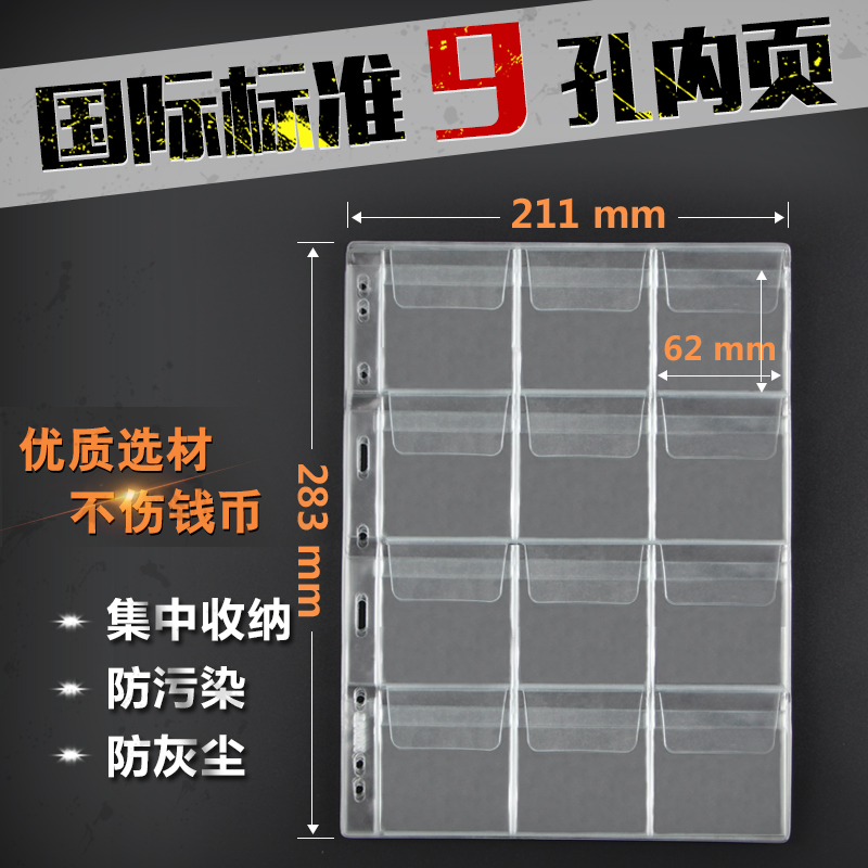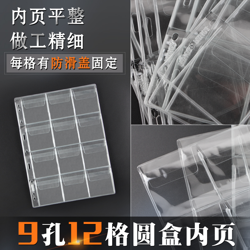 Mingtai 9-hole commemorative coin collection round box square box inner page ancient coin coin collection book protection 12 paper clip loose-leaf