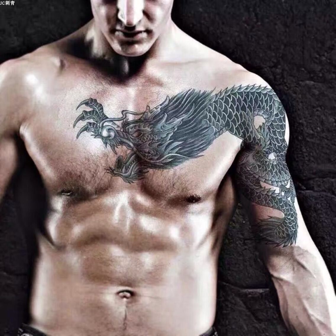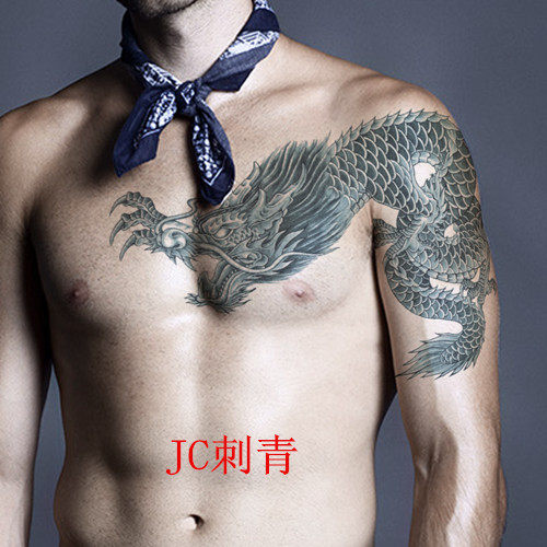 JC waterproof male tattoo sticker big flower arm lifelike long-lasting young man Chen Haonan arm dragon tattoo whole shawl