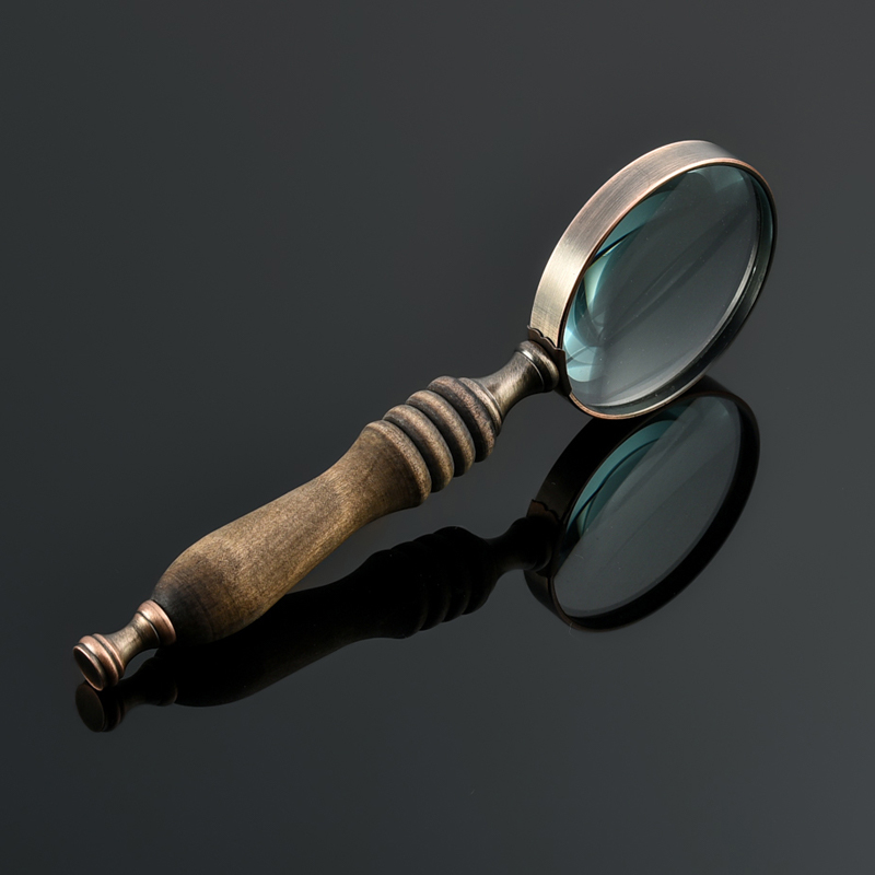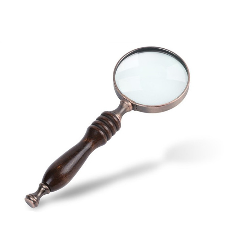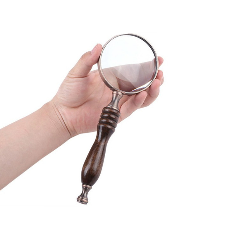 Ancient bronze box gift box Handheld high-fold magnifying glass 10 times retro glass lens Magnifier Read differential Calligraphy and painting