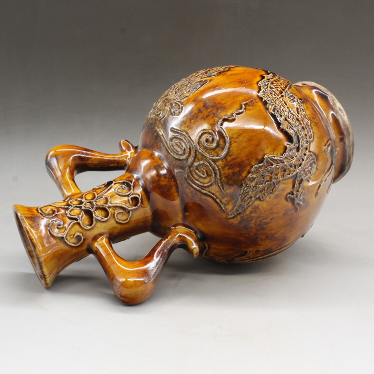 Clear Yellow Glaze Dragon Phoenix presented with an auspicious double ear bottle of ancient play porcelain antique antique antique making old swing piece collection