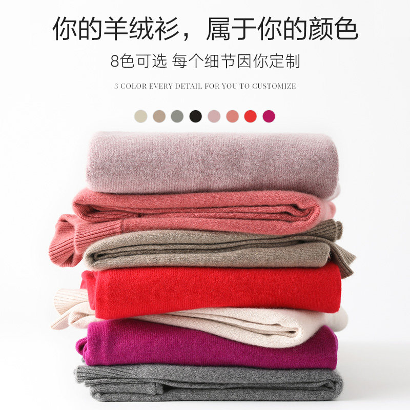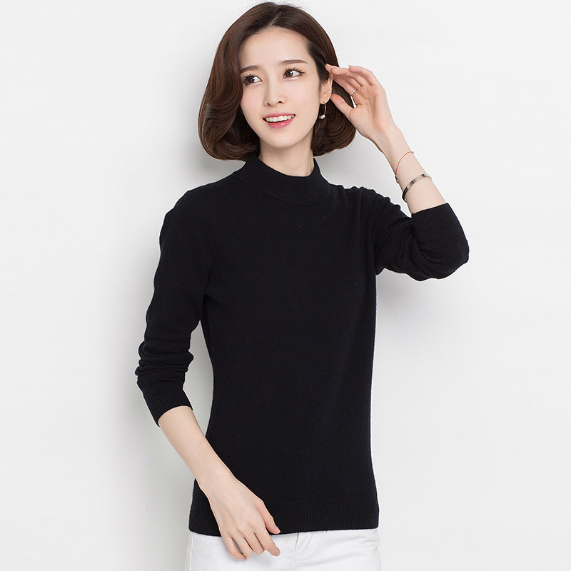 Hengyuan Xiang Half High collar jacket Head cashmere Shirt lady autumn winter new pure mountain cashmere beating bottom stitch sweatshirt pure color sweater-Taobao