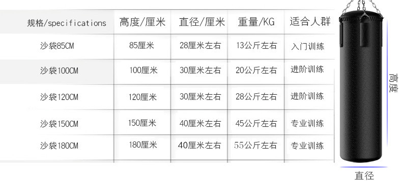 Black 85cm Leather Sandbag Black 1m Leather Sandbag Black 1 2m Leather Sandbag Black 1 5m Leather Sandbag Black 1 8m Leather Sandbag Red 85cm Leather