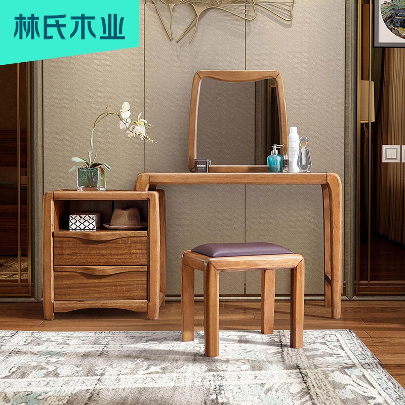Lin's wood industry modern new Chinese style makeup bench bed head cabinet integrated bedroom solid wood frame small family style makeup table CU1C