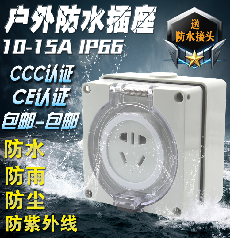 Outdoor waterproof and rainproof socket five-hole socket new national standard multi-function 10A seat IP66 outdoor rainproof box