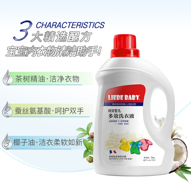 Libei Baby laundry detergent for infants and young children Special package for newborns Natural BB washing liquid 2kg