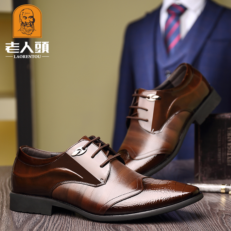 Old man's scalp shoes men's leather new breathable business formal leather shoes cowhide lace-up pointed men's shoes