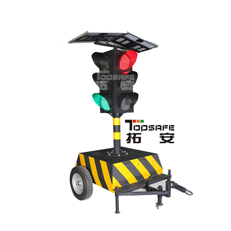 Mobile Solar Traffic Light Four Sides Three Lights Traffic Signal Trailer Style Super Bright LED Light Waterproof