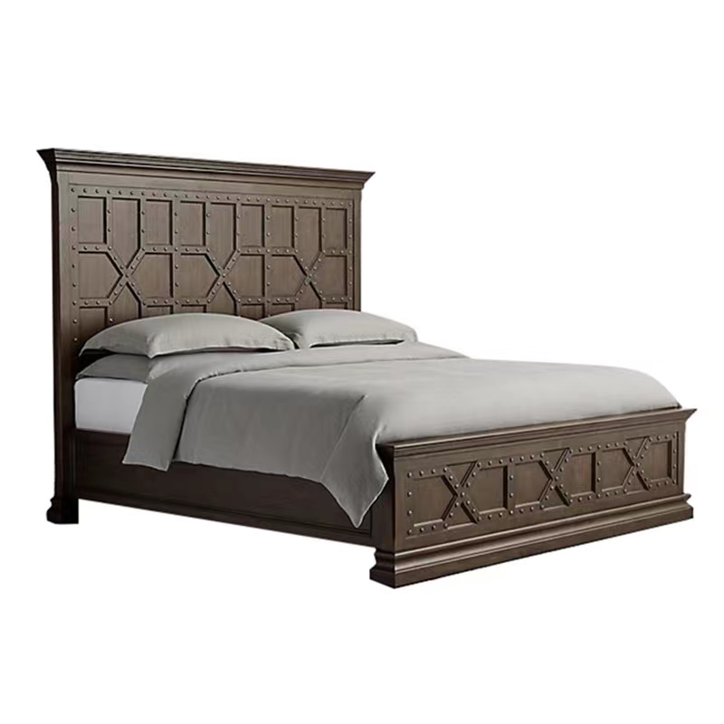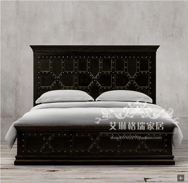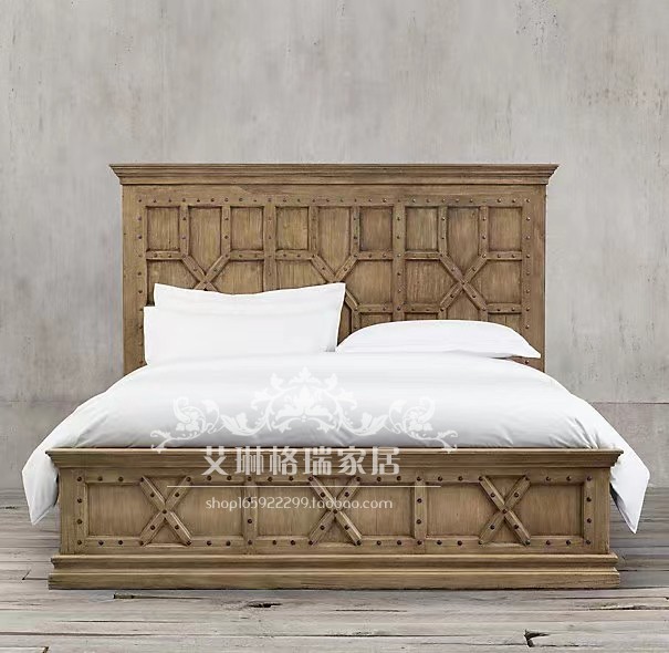 RH American country solid wood bed bedroom double bed rivet creative big bed French retro old 18 meters wedding bed