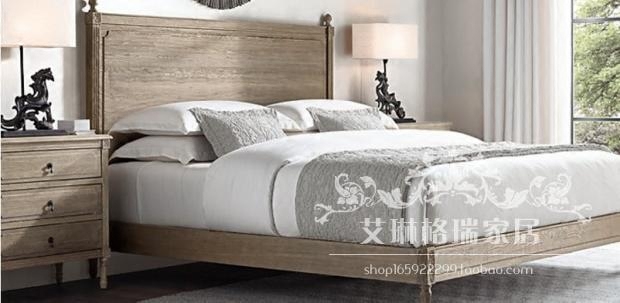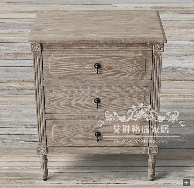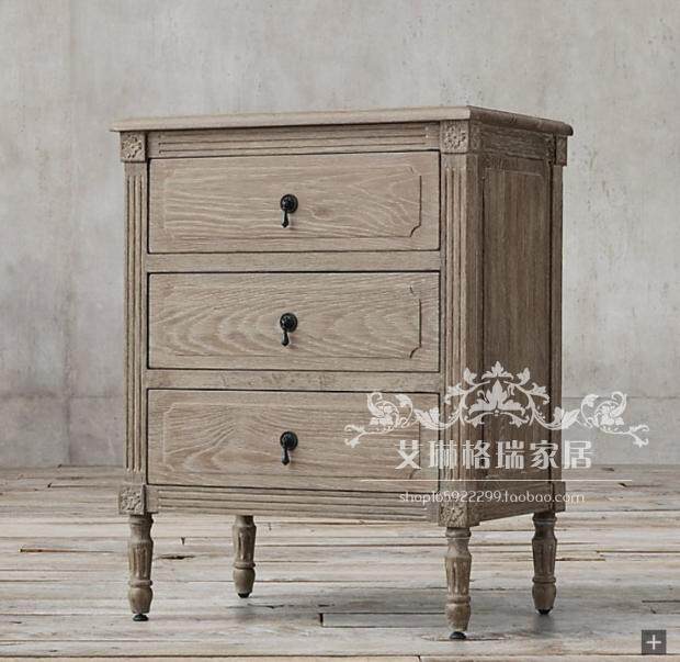 French retro old style postmodern gray bedside table American country solid wood bedside table carved locker