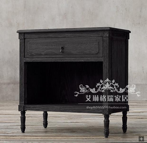 Fa-style retro for old style postmodern black bed head cabinet American countryside solid wood bed head cabinet Carved Flower Lockers