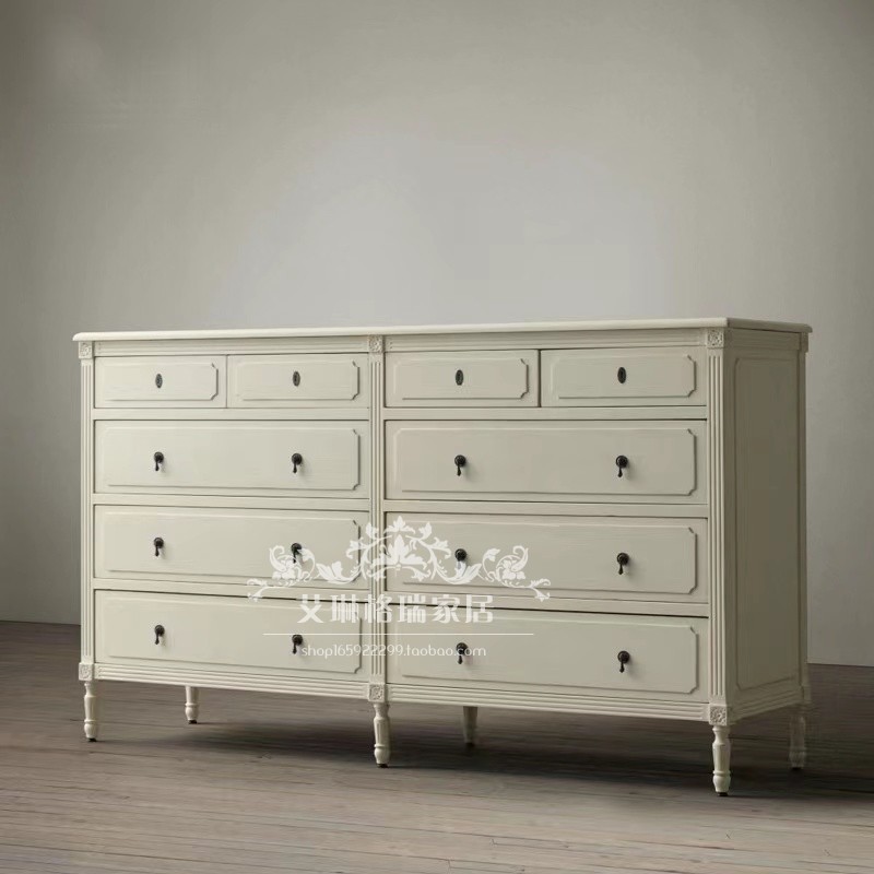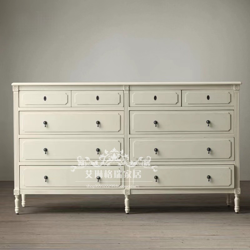 American solid wood drawer cabinet light luxury storage cabinet 10 drawer cabinet living room porch cabinet retro modern locker storage cabinet