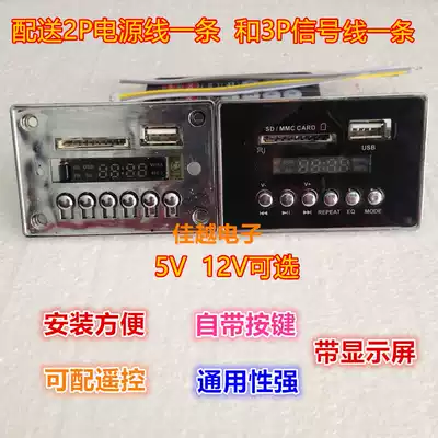 Universal MP3 card reading board MP3 decoding board Square dance rod audio power amplifier decoding board with display 5V 12V