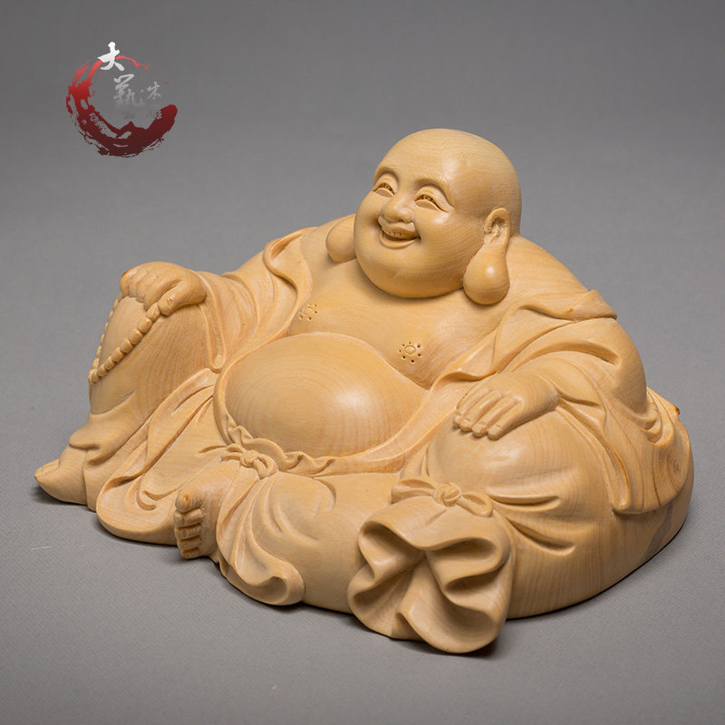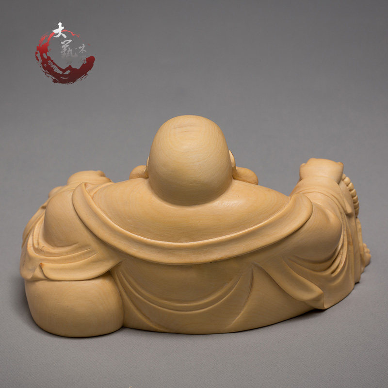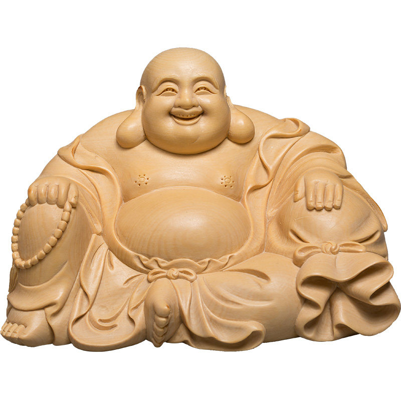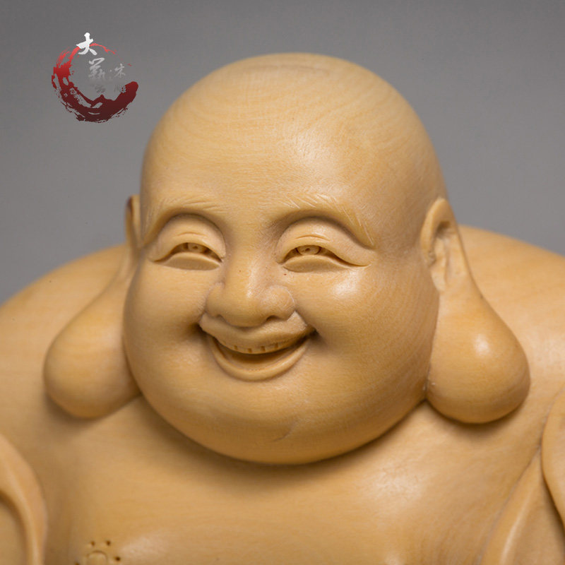 Small leaf boxwood carving Buddha statue Fine solid wood home carving crafts Character ornaments Smiling face bag Maitreya