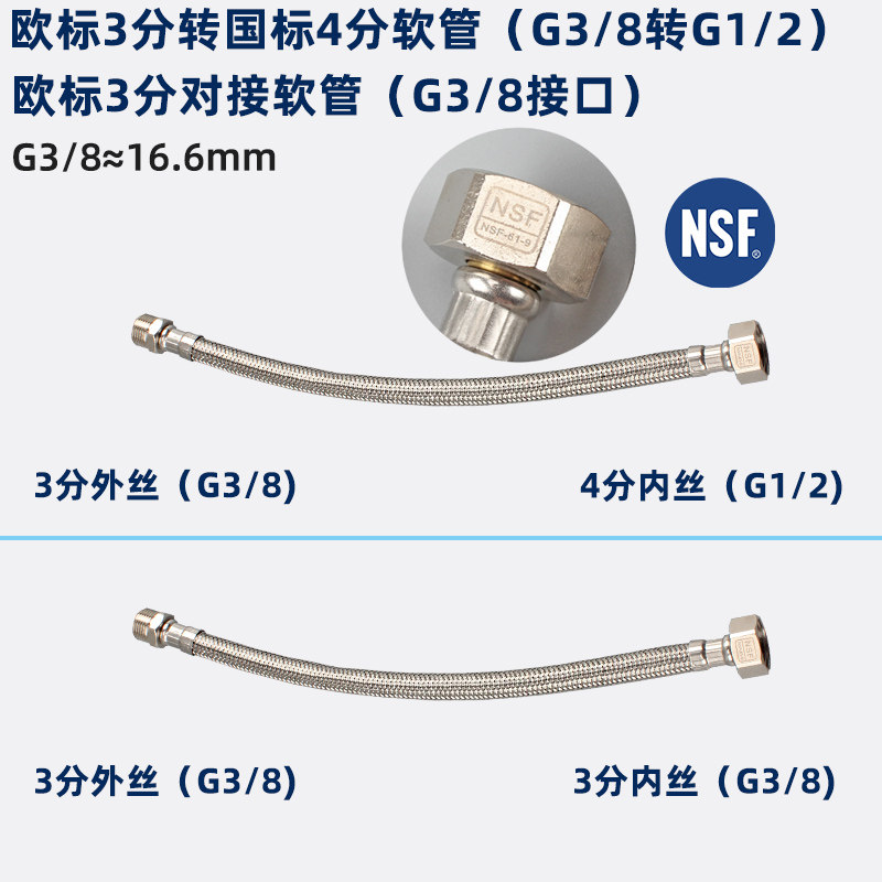 3 minutes to 4 minutes internal and external wire angle valve with 3 minutes to 4 minutes direct hose docking with NSF certification European standard hose 20CMNSF certification European standard hose 30CMNSF certification European standard hose 40CMNSF certification European standard transfer hose 20CMNSF certification European standard transfer hose 30 CMNSF certification European standard transfer hose 40CM European standard transfer hose 40CM European standard outlet 3 corner valve one 3 minute nitrile rubber gasket two 4 minutes nitrile gasket two
