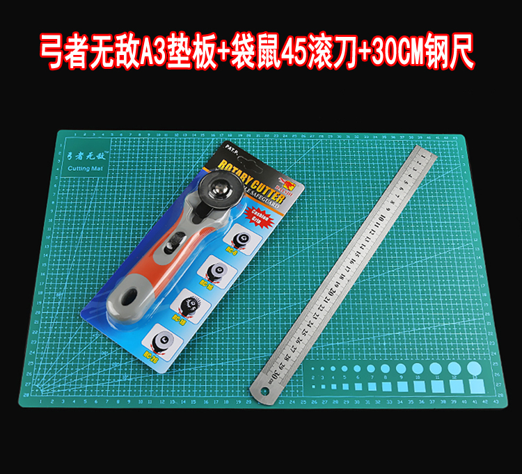 Bowman Universal ruler 3-piece set of 2 blades Bowman A4 pad One Bowman Invincible 45mm blade 2 Qize A3 pad One (with taper)Bowman A4 board Kangaroo knife steel ruler bow